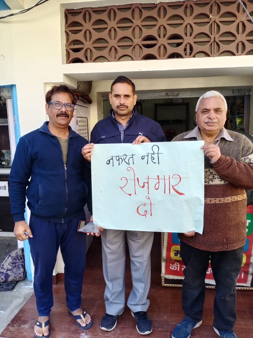 नफरत नहीं रोजगार दो, अभियान के तहत विभिन्न संगठन अभियान में शामिल हुए ।