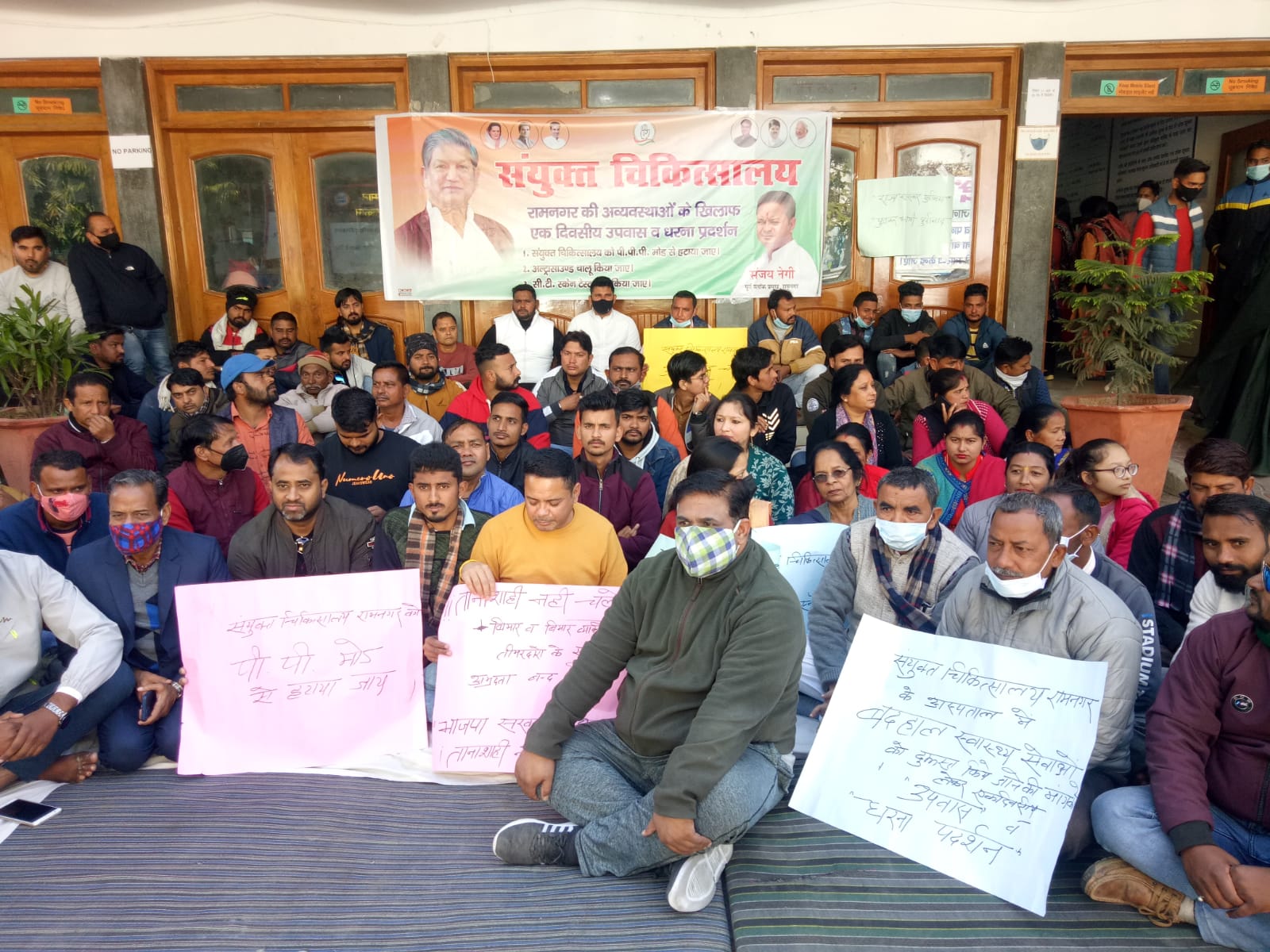 जनप्रतिनिधियों का भाजपा सरकार और संयुक्त चिकित्सालय के खिलाफ धरना प्रदर्शन