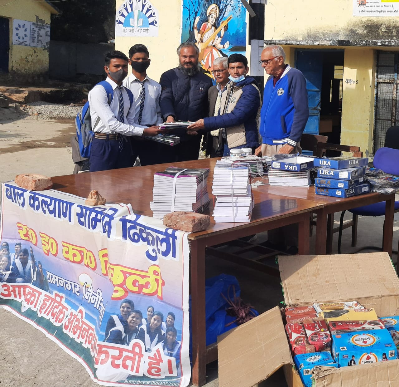 रामनगर।कड़ाके की ठंड को देखते हुए राजकीय इंटर कालेज ढिकुली मे अध्ययनरत आर्थिक रुप से कमजोर छात्र/ छात्राओं को 20 स्वेटर , 40 जोड़ी जूते, 100 कॉपियां और 200 पेन बांटे गये| बालकल्याण समिति ढिकुली और दिल्ली की कंपनी ‘बोस’ के संयुक्त प्रयास से बीस हजार मूल्य के बच्चो के जरूरत के उपयोगी सामान और दस हजार मूल्य का एक कार्डलेस माइक और साउंड सिस्टम भी कालेज के प्रदान किया। पाँच बच्चों को स्कालरशिप दी थी।