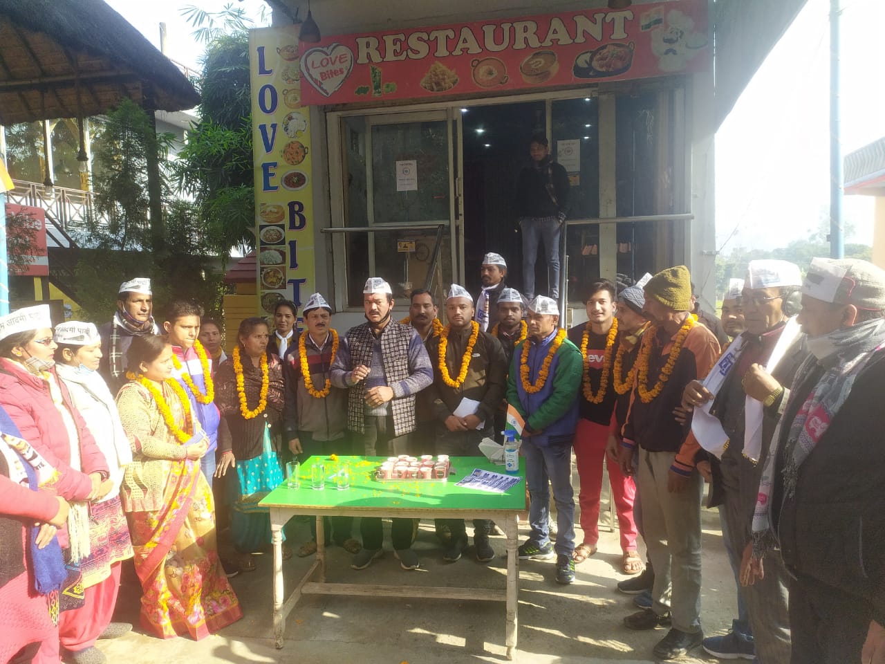 रामनगर। आम आदमी पार्टी द्वारा डोर टू डोर कार्यक्रम के दौरान ग्राम ढीकुली में आज कई ग्रामीण आम आदमी पार्टी में शामिल हुए। शामिल होने वालों में कुलदीप जोशी राकेश जोशी पंकज जोशी जगदीश राजेंद्र रावत राकेश देवकी देवी रुखसाना मीना फर्त्याल हेमा जोशी सहित दर्जनों लोगों ने आम आदमी पार्टी की सदस्यता ग्रहण की आम आदमी पार्टी के प्रदेश उपाध्यक्ष शिशुपाल रावत ने पार्टी की सदस्यता ग्रहण कराते हुए उन्हें भरोसा दिलवाया की आप पार्टी सभी के साथ हमेशा कंधे से कंधा मिलाकर खड़ी रहेगी। जिस प्रकार से दिल्ली में केजरीवाल शिक्षा स्वास्थ्य बिजली पानी रोजगार देने के लिए कार्य कर रहे हैं उत्तराखंड में भी हमें अब जनजागृति कर लोगों को जागरूक करके आम आदमी पार्टी की सरकार बनाने के लिए प्रेरित करना होगा। उनके साथ में नगर अध्यक्ष नवीन नथानी संगठन मंत्री भास्कर जोशी , ललित पांडे जी मंजू नैथानी, दीपा रावत सीमा जोशी, कविता मठपाल, दीपा आर्य जी सैफॉली रावत, नसीमा जहां, सुनीता रावत, निर्मल हिमांशु निश्चय आनंद, प्रकाश खुल्बे आदि कार्यकर्ता साथी उपस्थित रहे