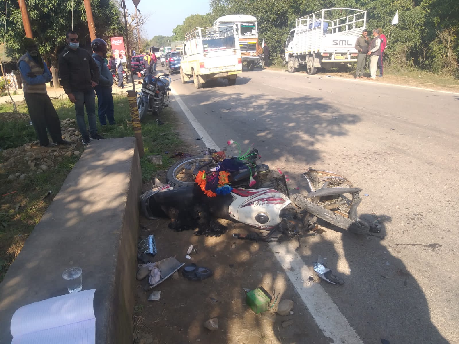 घटना की जानकारी मिलते ही बैलपड़ाव पुलिस ने मौके पर पहुंचकर स्थानीय लोगों की मदद से 108 से हल्द्वानी भिजवाया। बताया जा रहा है कि हादसे में विजय पुत्र हरिराम निवासी शिवनाथपुर पुरानी बस्ती मलधन, रामनगर की अस्पताल पहुंचने से पहले ही मृत्यु हो गयी, जबकि बाइक पर सवार हरिराम एवं संजना पुत्री रमेश चंद्र घायल हो गए। पुलिस ने दोनों वाहनों को अपने कब्जे में ले लिया है।