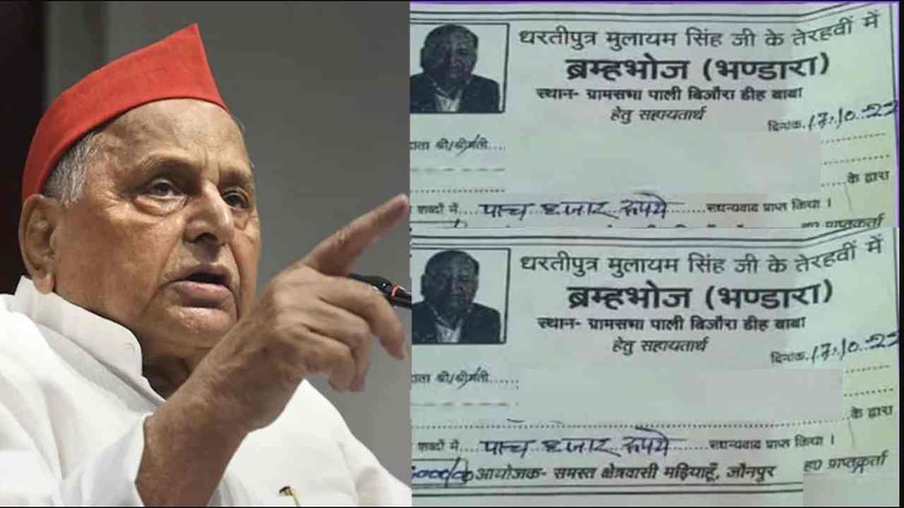वायरल रसीद पर लिखा है कि जौनपुर के मडियाहूं के पाली बिजौरा गांव में दिवंगत मुलायम सिंह यादव की तेरहवीं का कार्यक्रम 22 अक्टूबर आयोजित होना है. रसीद पर प्राप्तकर्ता के तौर पर जगदीश यादव के हस्ताक्षर भी दिख रहे हैं. हालांकि, अब कार्यक्रम रद्द हो चुका है.