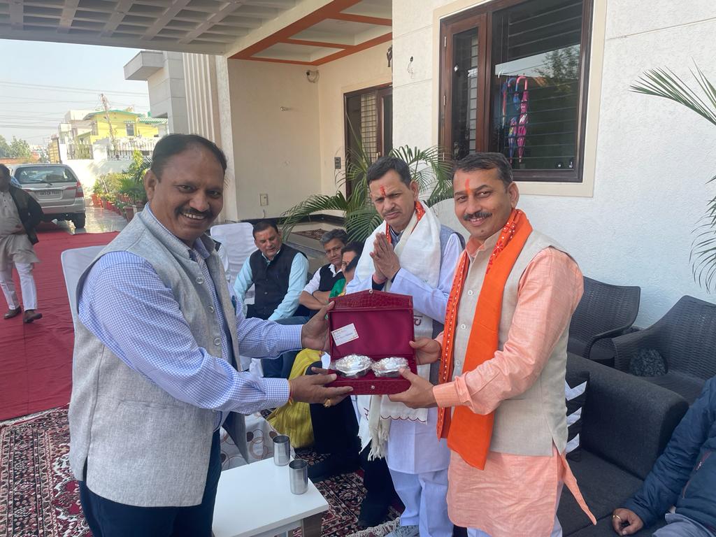 कालाढूंगी।मनोज पाठक प्रांत प्रशिक्षण प्रमुख के आवास बिठौरिया में नवनियुक्त प्रदेश के महामंत्री आदित्य कोठारी जिले के सम्मानित अध्यक्ष प्रताप बिष्ट प्रदेश के प्रवक्ता हेमंत द्विवेदी एवं प्रकाश रावत एवं प्रदेश मीडिया प्रभारी चंदन बिष्ट का विठोरिया क्षेत्र के लोगों ने मनोज पाठक के आवास पर भव्य स्वागत किया । जिला पंचायत अध्यक्ष बेला तोलिया एवं जिला पंचायत के उपाध्यक्ष आनंद दरमवाल का भी विठोरिया निवासियों में एवं भारतीय जनता पार्टी के कार्यकर्ताओं ने स्वागत किया। उक्त कार्यक्रम में मनोज पाठक जिले का भारतीय जनता पार्टी के नए प्रदेश दायित्व के साथ श्रीमान आदित्य जी एवं जिले के अध्यक्ष प्रताप बिष्ट जी के नेतृत्व में भारतीय जनता पार्टी दिन दूनी रात चौगुनी मेहनत कर पार्टी के संगठन को जन-जन तक पहुंचाने में कोई कोर कसर नहीं छोड़ेंगे साथ ही आदित्य कोठारी ने सबको बधाई देते हुए ऊर्जा के साथ भारतीय जनता पार्टी को बढ़ाने के लिए कार्य करने का आवाहन किया ।जिले के अध्यक्ष प्रताप बिष्ट ने सबको साथ लेकर कार्य संकल्प को बढ़ाने का कार्य करते रहने का वचन दिया साथ ही मंडल के अध्यक्ष देवी दयाल उपाध्याय, विनीत अग्रवाल मुकेश , दीपक बिष्ट , कमल पांडे ,गौरव मेहरा ,क्षेत्र पंचायत सदस्य एवं दीपक भगवंत अधिकारी, चंदन सिंह बिष्ट, कमल बिष्ट ,योगेश तिवारी , भोपाल सिंह गैंडा, प्रेम बल्लभ कांडपाल ,तारा कांडपाल, अनिल जोशी, राम सिंह नेगी, राम सिंह बिष्ट, आदि सैकड़ों कार्यकर्ता थे।