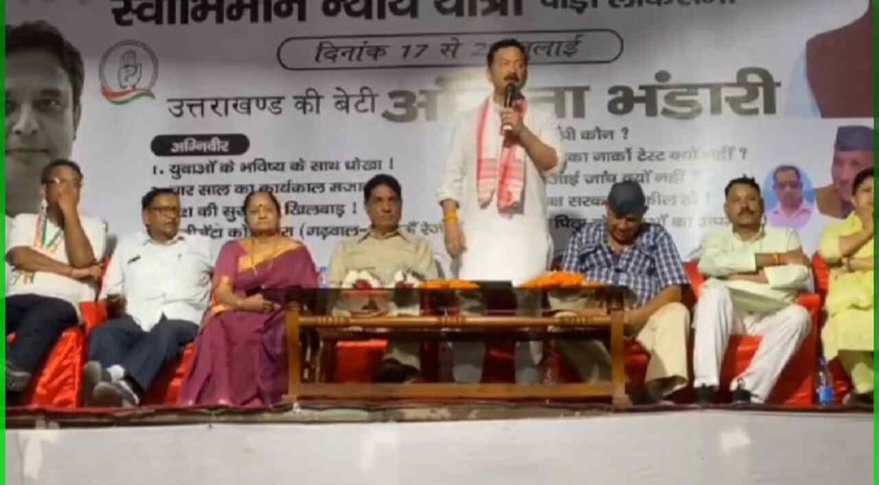 देहरादून: कोटद्वार में वनंतरा रिसार्ट की महिला कर्मचारी की हत्या प्रकरण को लेकर कांग्रेस की स्वाभिमान न्याय यात्रा में प्रदेश अध्यक्ष करन माहरा के वायरल वीडियो ने प्रदेश की राजनीति गर्मा दी है। हत्या मामले में गढ़वाल मंडलवासियों के आह्वान के इस वीडियो के बारे में माहरा ने कहा कि इसमें छेड़छाड़ की गई है। वहीं प्रदेश कांग्रेस अनुशासन समिति ने इस मामले में प्रदेश महामंत्री राजेंद्र शाह को नोटिस भेजा है। पौड़ी जिले के यमकेश्वर विधानसभा क्षेत्र के अंतर्गत वनंतरा रिसार्ट की महिला कर्मचारी की हत्या मामले को कांग्रेस लगातार मुद्दा बना रही है। पौड़ी लोकसभा क्षेत्र के अंतर्गत इसे लेकर विशेष अभियान छेड़ा गया है। इसी के अंतर्गत प्रमुख विपक्षी दल की ओर से कोटद्वार में स्वाभिमान न्याय यात्रा निकाली गई थी।
