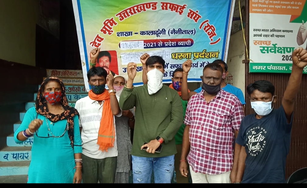 कालाढूंगी। (शाकिर हुसैन) देवभूमि उत्तराखंड सफाई कर्मचारी संघ के बैनर तले सफाई कर्मियों ने ठेका प्रथा को समाप्त करने व स्थाई नियुक्ति दिए जाने तथा अन्य मांगों को लेकर हड़ताल शुरू कर दी है। सफाई कर्मियों की हड़ताल के बाद नगर क्षेत्र में जगह जगह कूड़े के ढेर दिखाई देने लगे हैं। कालाढूंगी इकाई के अध्यक्ष जीवन वाल्मीकि व जिला महामंत्री महिपाल ने कहा जबतक उनकी मांगे नहीं मानी जाती हड़ताल जारी रहेगी।