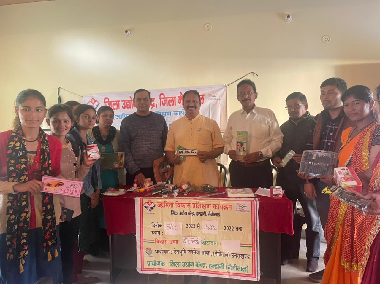 कालाढूंगी। दोहनिया कोटाबाग स्थित लाइब्रेरी में रोजगार परक योजना ब्यूटीशियन कोर्स का 1 माह का प्रशिक्षण शिविर मनोज पाठक पूर्व प्रदेश प्रशिक्षण प्रमुख ने उद्घाटन किया।इस दौरान मनोज पाठक ने कहा की भारत प्रधानमंत्री नरेंद्र मोदी के आत्मनिर्भर भारत बनाने के सपने को उत्तराखंड प्रदेश के मुख्यमंत्री पुष्कर सिंह धामी द्वारा जिला उद्योग केंद्र के माध्यम से ट्यूशन रोजगार परियोजना का प्रशिक्षण कोटाबाग में कराया जा रहा है।वही अन्य योजनाएं सरकार के द्वारा सब्सिडी के माध्यम से रोजगार हेतु योजनाएं तैयार की जा रही है वह इन योजनाओं में सभी प्रशिक्षणार्थी मन लगाकर प्रशिक्षण ले और ब्यूटीशियन कोर्स का जिस तरह गांव गांव शहर शहर में अपनाया जा रहा है यह एक अच्छा रोजगार है।