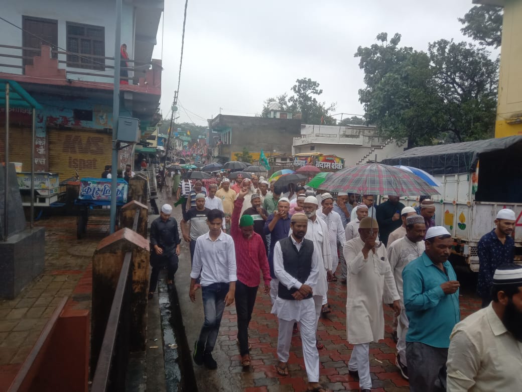 भारी वर्षा के बीच मुस्लिम समाज के लोगो ने जश्ने ईद मिलादुन्नबी के जुलूस में की शिरकत।