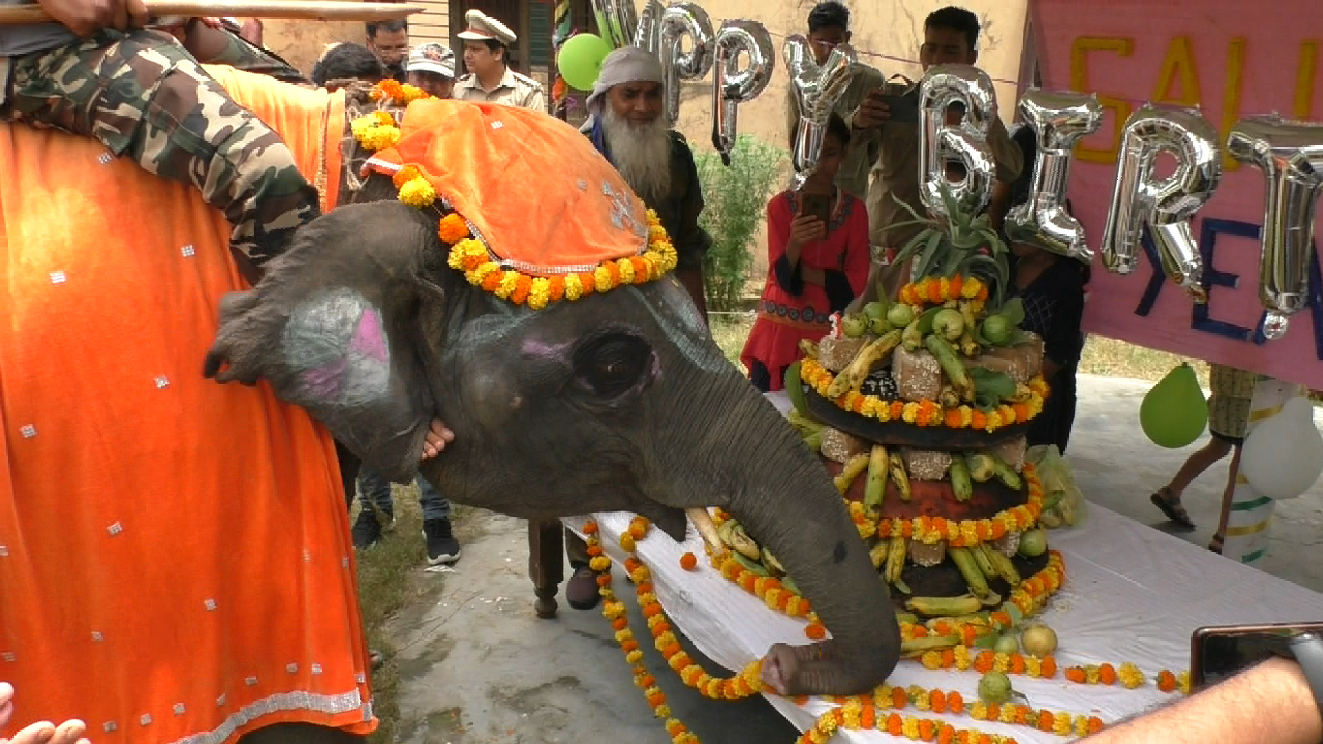 कॉर्बेट के कालागढ़ कैम्प में हाथी के बच्चे सावन का तीसरा बर्थडे धूमधाम से मनाया गया।