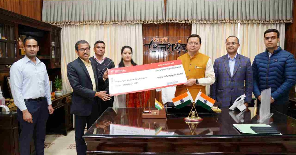 पिथौरागढ़ वासियों के लिए खुशखबरी है। दिल्ली से पिथौरागढ़ के लिए हवाई सेवा शुरू हो गई है। सीएम पुष्कर सिंह धामी ने पिथौरागढ़ के लिए शुरू हो रही एलायंस एयर की हवाई सेवा का शुभारंभ किया। सीएम धामी ने कहा कि विमान के संचालन से सीमांत जनपद पिथौरागढ़ में एयर कनेक्टिविटी और सुदृढ़ होगी।