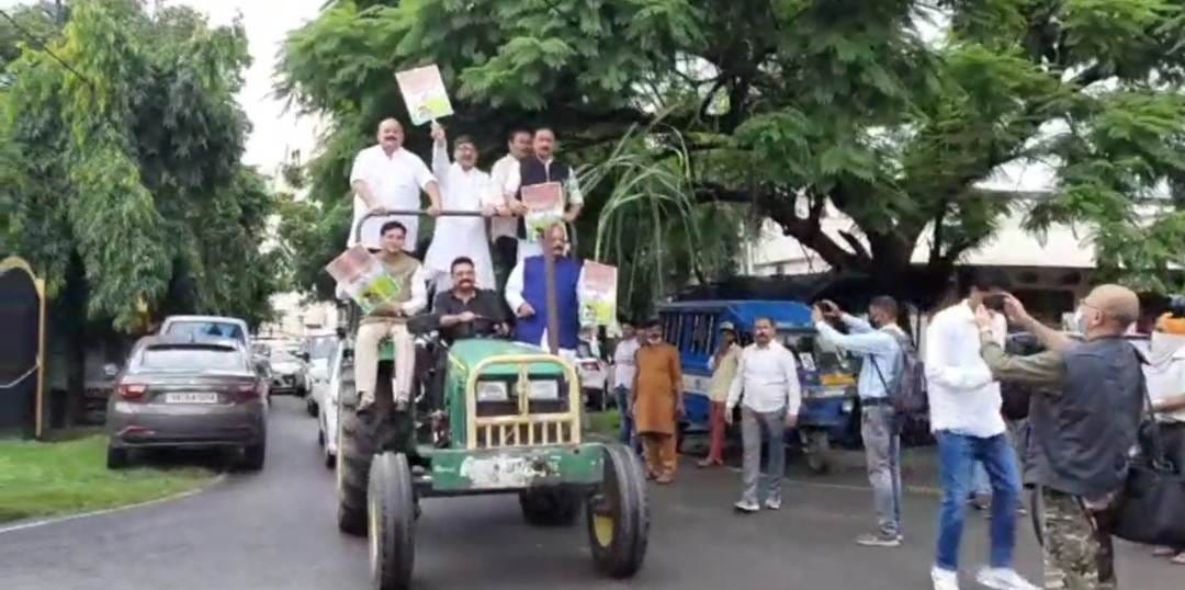 साइकिलऔर ट्रैक्टर से विधानसभा पहुँचे कांग्रेस विधायक ।