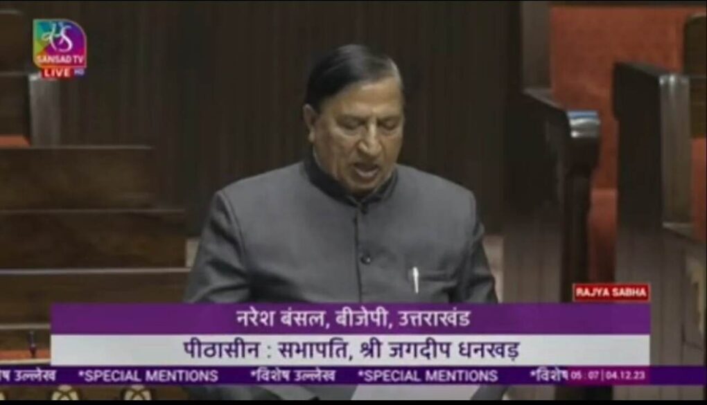 उत्तराखंड : राज्यसभा में बोले सांसद नरेश बंसल, उठाया ग्रीन बोनस और फ्लोटिंग पॉपुलेशन का मुद्दा