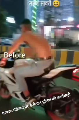 इंस्टाग्राम पर फेमस होने के चक्कर में एक युवक हल्द्वानी-नैनीताल रोड में अर्धनग्न होकर बाइक से स्टंट कर रहा था. वीडियो वायरल होते ही नैनीताल के एसएसपी एसएसपी मीणा तक पहुंचा. जिसके बाद एसएसपी ने युवक के खिलाफ कार्यवाही के निर्देश दिए. चंद लाइक्स के लालच में पुलिस ने युवक को थाने पहुंचा दिया. पुलिस ने स्टंड में इस्तेमाल होने वाली बाइक भी सीज कर दी है.