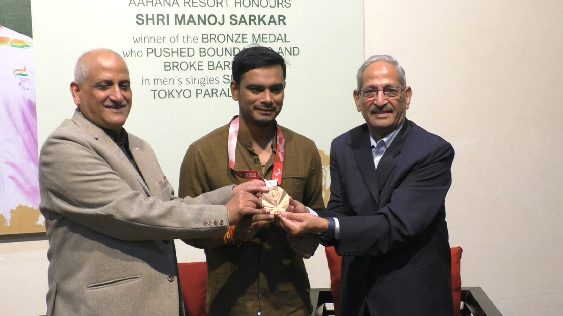 देश के लिए टोक्यो पैरा ओलिंपिक में बैडमिंटन में कांस्य पदक जीतने वाले मनोज सरकार का रामनगर में सम्मान किया गया। सवालदे के एक रिजॉर्ट ने अर्जुन पुरस्कार विजेता इस खिलाड़ी का सम्मान किया। जहां स्कूली बच्चे भी उन्हें अपने बीच पाकर खुश थे। मनोज सरकार अब 2024 ओलिंपिक में स्वर्ण पदक जीतने के लिए आतुर हैं। उन्होने बताया की वह अपनी मां की प्रेरणा से इस मुकाम को हासिल कर पाए। उधर आयोजको की यदि माने तो उनके सम्मान का यह कार्यक्रम उनको सम्मान देने के साथ ही क्षेत्र के बच्चो को प्रेरित करने के लिए आयोजित किया गया।