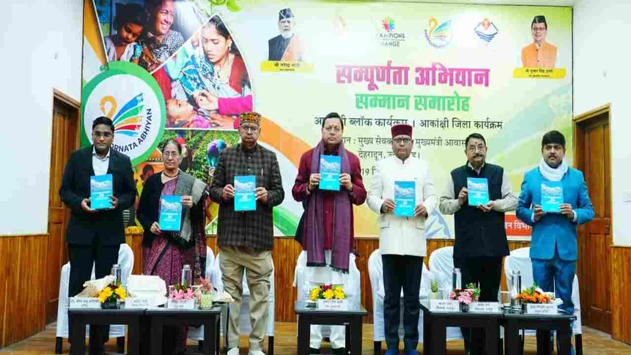 देहरादून: भारत सरकार की नीति आयोग की ओर से चलाए जा रहे आकांक्षी जनपद कार्यक्रम के तहत उत्तराखंड के दो जिलों ऊधमसिंह नगर और हरिद्वार को सम्मानित किया गया. शुक्रवार को मुख्य सेवक सदन में सम्पूर्णता अभियान सम्मान समारोह कार्यक्रम का आयोजन किया गया, जहां मुख्यमंत्री ने नीति आयोग भारत सरकार से मिले प्रशस्ति पत्र एवं पदकों से आकांक्षी जनपद कार्यक्रम और आकांक्षी ब्लॉक कार्यक्रम में बेहतर प्रदर्शन करने वाले जिलों और विकासखंडों को सम्मानित किया.