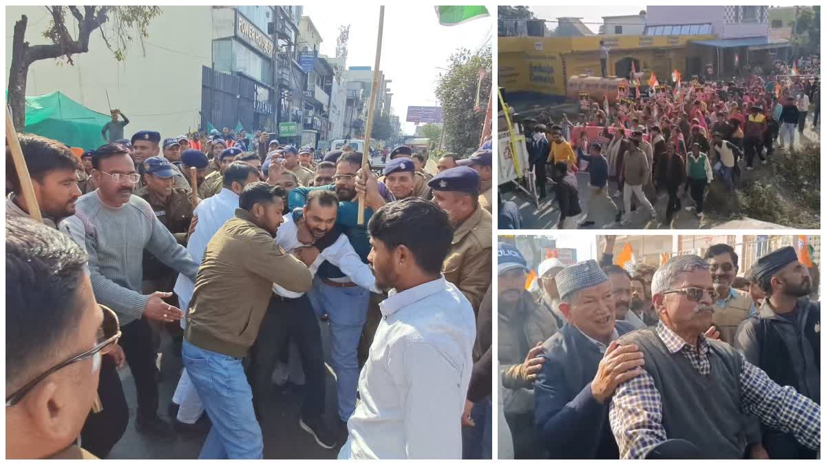 यूथ कांग्रेस के कार्यकर्ताओं को हिरासत में लिया: हरिद्वार में अंकिता भंडारी प्रकरण, भाजपा नेत्री रही अनामिका शर्मा की बेटी के दुष्कर्म के मामले और अवैध शराब की बिक्री के विरोध में यूथ कांग्रेस के कार्यकर्ताओं ने जोरदार प्रदर्शन किया. हरिद्वार के भाजपा विधायक मदन कौशिक का घेराव करने जा रहे हैं कांग्रेसियों को पुलिस ने बैरिकेड लगाकर रोक लिया. प्रदर्शन से पहले ही मदन कौशिक के आवास से दूरी पर पुलिस ने बैरिकेडिंग लगा दी और भारी पुलिस बल तैनात किया. इस दौरान मदन कौशिक के आवास जाने की कोशिश कर रहे कांग्रेस कार्यकर्ताओं की पुलिस से नोकझोंक भी हुई. पुलिस ने कई कांग्रेस कार्यकर्ताओं को हिरासत में ले लिया और बस में बैठा लिया. कांग्रेसियों की यही मांग है कि अंकिता भंडारी हत्याकांड की जांच केवल सीबीआई ना करें बल्कि सुप्रीम कोर्ट के सिटिंग जज की निगरानी में सीबीआई जांच की जानी चाहिए.