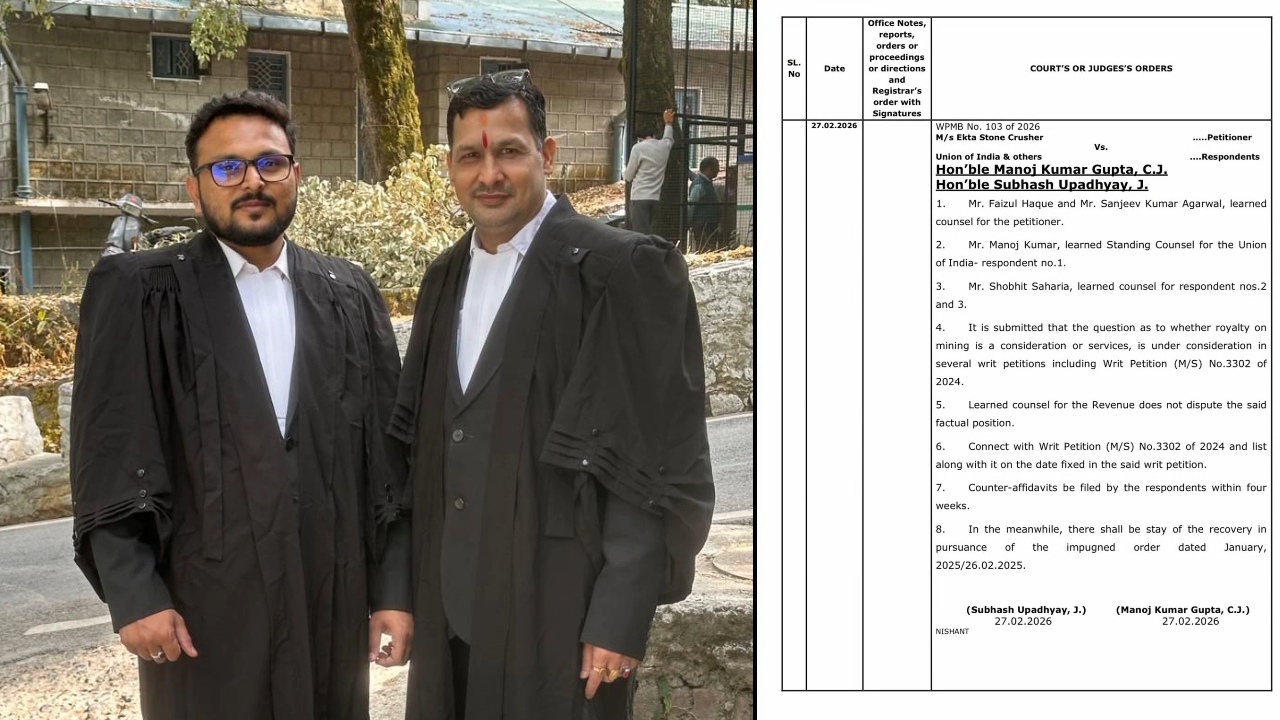 रामनगर -माननीय उच्च न्यायालय, उत्तराखण्ड (नैनीताल) की द्वैधपीठ — माननीय मुख्य न्यायाधीश श्री मनोज कुमार गुप्ता एवं माननीय न्यायमूर्ति श्री सुभाष उपाध्याय — ने WPMB संख्या 103/2026, M/s Ekta Stone Crusher बनाम Union of India एवं अन्य में महत्वपूर्ण अंतरिम आदेश पारित किया है।