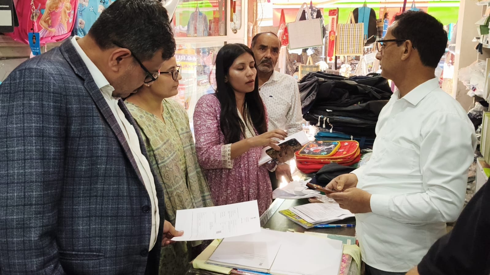 उपजिलाधिकारी कालाढूंगी बिपिन चंद्र पंत के नेतृत्व में अभिभावकों से निर्धारित बिक्री दर से अधिक रुपए वसूले जाने की शिकायत पर संयुक्त रूप से बुक सेलर की दुकानों का निरीक्षण किया।