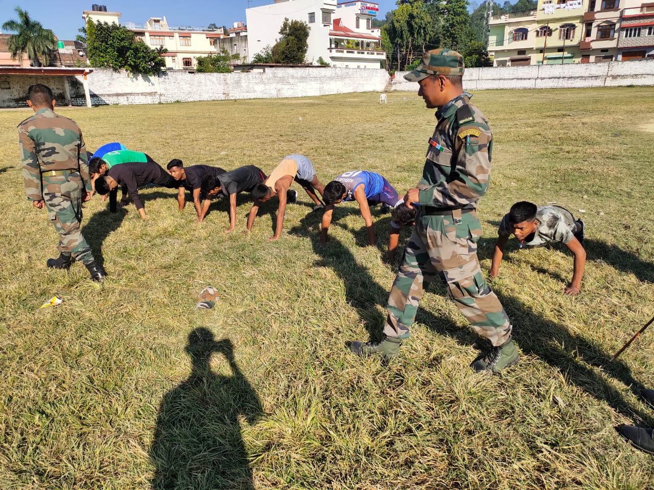 भर्ती हेतु छात्रों को छोटे छोटे समूहों में बाँटकर दौड़ कराई गई साथ ही कठिन शारिरीक दक्षता परिक्षण कराया गया तत्पश्चात कमान अधिकारी कर्नल अजय सिंह के निर्देशन मे बटालियन से आएं सूबेदार मेजर ललित मोहन बोरा, सूबेदार महिपाल सिंह, नायब सूबेदार किशन सिंह, बी. एच. एम .गणेश चंद सी.एच.एम. ललित मोहन एवं हवलदार नरेन्द्र चंद, तथा हवलदार नीरज ने छात्रों का फिजिकल टेस्ट छात्र / छात्राओं का एन.सी.सी.आर्मी हेतु चयन किया गया ।