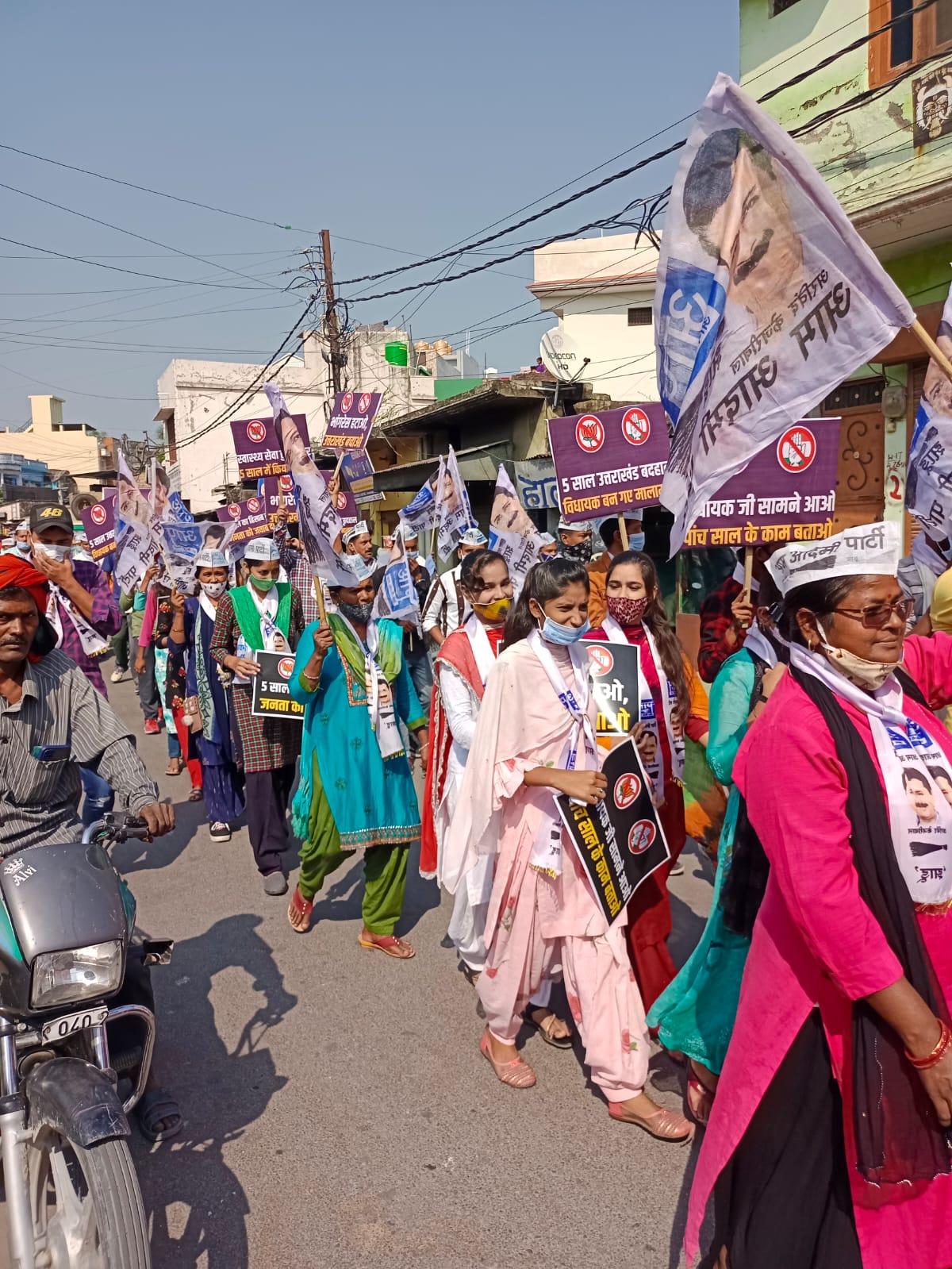 रामनगर। आम आदमी पार्टी द्वारा  विधानसभा रामनगर द्वारा पूर्व प्रस्तावित कार्यक्रम के तहत आज विधायक दीवान सिंह बिष्ट के निवास पर सैकड़ों कार्यकर्ताओं द्वारा जवाब दो हिसाब दो कार्यक्रम के तहत शहीद भगत सिंह चौक भवानीगंज से नारेबाजी करते हुए आम आदमी पार्टी के लगभग 200 अधिक कार्यकर्ताओ द्वारा एक रैली के साथ प्रदर्शन किया गया इस प्रदर्शन का नेतृत्व शिशुपाल सिंह रावत प्रदेश उपाध्यक्ष प्रभारी रामनगर विधानसभा के द्वारा किया गया प्रदर्शन के दौरान