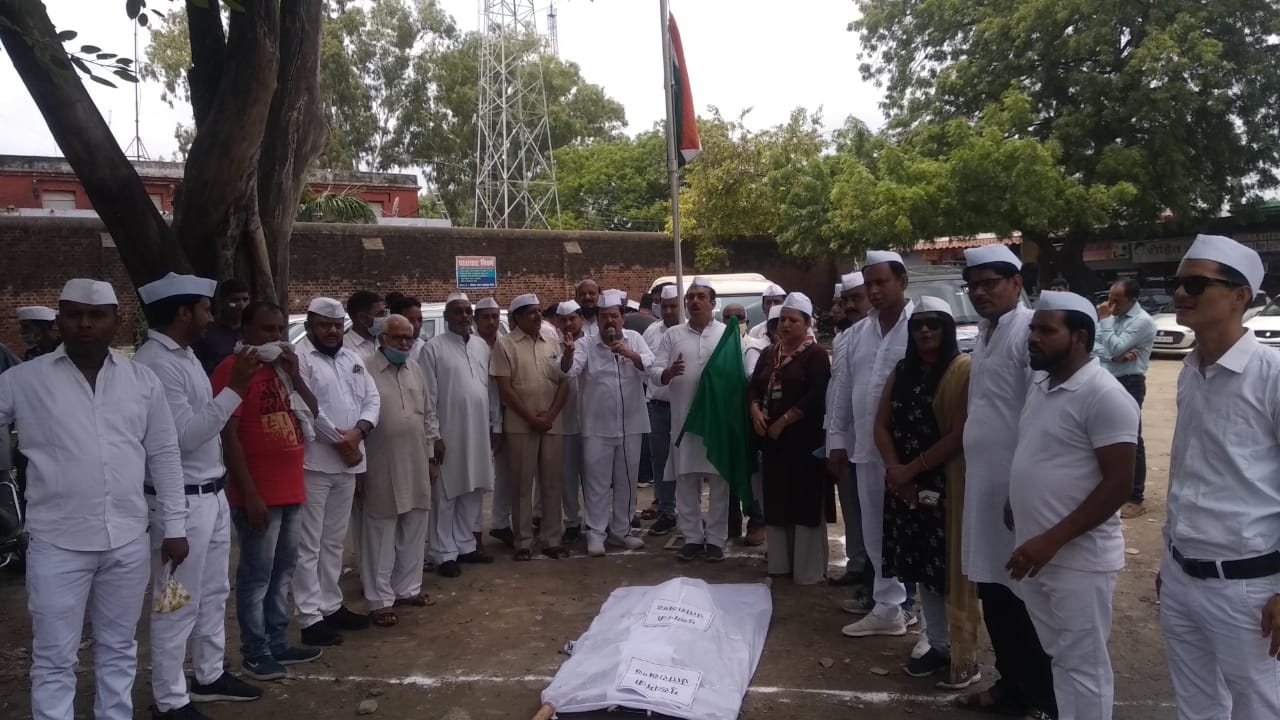 काशीपुर आज कांग्रेस सेवा दल द्वारा जेल रोड एसपी कार्यालय पार्किंग प्रांगण में कांग्रेस सेवा दल द्वारा मुख्यमंत्री की शव यात्रा का शुभारंभ हरी झंडी दिखाकर कांग्रेस सेवा दल के प्रदेश अध्यक्ष श्री राजेश रस्तोगी व काशीपुर कांग्रेस कमेटी के महानगर अध्यक्ष संदीप सहगल एडवोकेट ने संयुक्त रूप से किया। ज्ञात रहे कि उत्तराखंड सरकार द्वारा पुलिसकर्मियों के पुराने ग्रेड पे को शीघ्र बहाल ना करने पर आक्रोशित समस्त कांग्रेस कार्यकर्ताओं ने भाजपा सरकार पर आक्रोश प्रकट करते हुए उत्तराखंड मित्र पुलिस कर्मियों के परिवार का शोषण भाजपा सरकार कर रही हैं। श्री राजेश रस्तोगी ने कहा कि कांग्रेस पार्टी इस शोषण को बर्दाश्त नहीं करेगी। तथा सरकार को चाहिए कि प्रदेश की जनता के साथ-साथ पुलिस कर्मियों के पुराने ग्रेड पे का भी संज्ञान लेकर विकास करें महानगर अध्यक्ष संदीप सहगल एडवोकेट ने कहा की पुलिस कर्मी 24 घंटे जनता की सेवा के लिए तत्पर रहते हैं। निस्वार्थ कोरोना काल में भी कोरोना वीरों के रूप में अपने कार्य को जनता के प्रति मेहनत व लगन से कार्य किया ऐसे में प्रदेश की भाजपा सरकार द्वारा निष्क्रियता के चलते पुलिस कर्मियों का परिवार भी कहीं ना कहीं भाजपा शासन में शोषण का शिकार बन रहा है ।कांग्रेस सेवादल के जिलाध्यक्ष सूर्य प्रताप सिंह चौहान ने सरकार पर तंज कसते हुए कहा की महंगाई, भ्रष्टाचार व कोरोना काल में भाजपा की दोगली नीतियों से प्रदेश की जनता त्राहि-त्राहि कर रही है ।ऐसे में पुलिस कर्मियों के पुराने ग्रेड पे को शीघ्र बहाल नहीं किया गया तो भाजपा सरकार की गलत नीतियों का जवाब प्रदेश की जनता अवश्य ही देगी, तथा कांग्रेस कार्यकर्ता सड़कों पर उतरने के लिए भी तैयार होंगे। उन्होंने कहा कि कांग्रेस सेवा दल का प्रत्येक कार्यकर्ता सच्चे सिपाही की तरह पूरी निष्ठा से जनता की सेवा में कोरोना काल में भी सेवा भाव से कार्य किया है। और भविष्य में होने वाले चुनाव में उत्तराखंड में कांग्रेस पार्टी का परचम लहराने के लिए तैयार है कार्यक्रम में महानगर अध्यक्ष संदीप सहगल एडवोकेट कहा कि पुलिसकर्मियों के ग्रेड पे को शीघ्र बहाल करने के लिए मुख्यमंत्री की शव यात्रा का शुभारंभ काशीपुर से किया जा रहा है जिस का समापन देहरादून कांग्रेस कार्यालय में प्रदेश अध्यक्ष श्री प्रीतम सिंह जी के द्वारा समापन करेंगे आक्रोशित कांग्रेस जनों में महानगर अध्यक्ष संदीप सहगल एडवोकेट सेवादल प्रदेश अध्यक्ष राजेश रस्तोगी सूर्य प्रताप सिंह चौहान ,अरुण चौहान ,ब्रह्मा सिंह पाल ,सफीक अहमद अंसारी, ओमपाल सिंह चौहान ,नौशाद हुसैन पार्षद ,मंसूर अली मेफेयर ,हिमांशु गौरव ,महेंद्र बेदी सचिन नाडिग, अजीता शर्मा, गीता चौहान ,अनीस अंसारी ,डॉ रमे