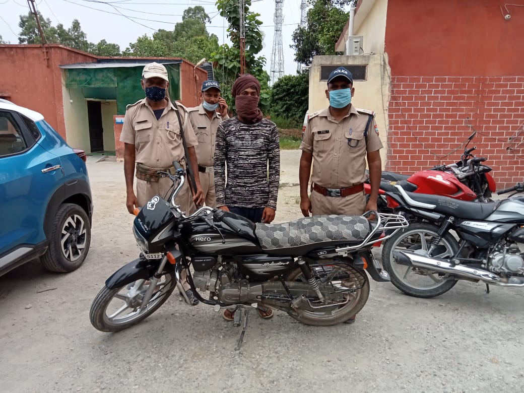 चोरी हुई मोटरसाईकिल को पुलिस ने ततपरता दिखाते हुए मय चोर के पकड़ा